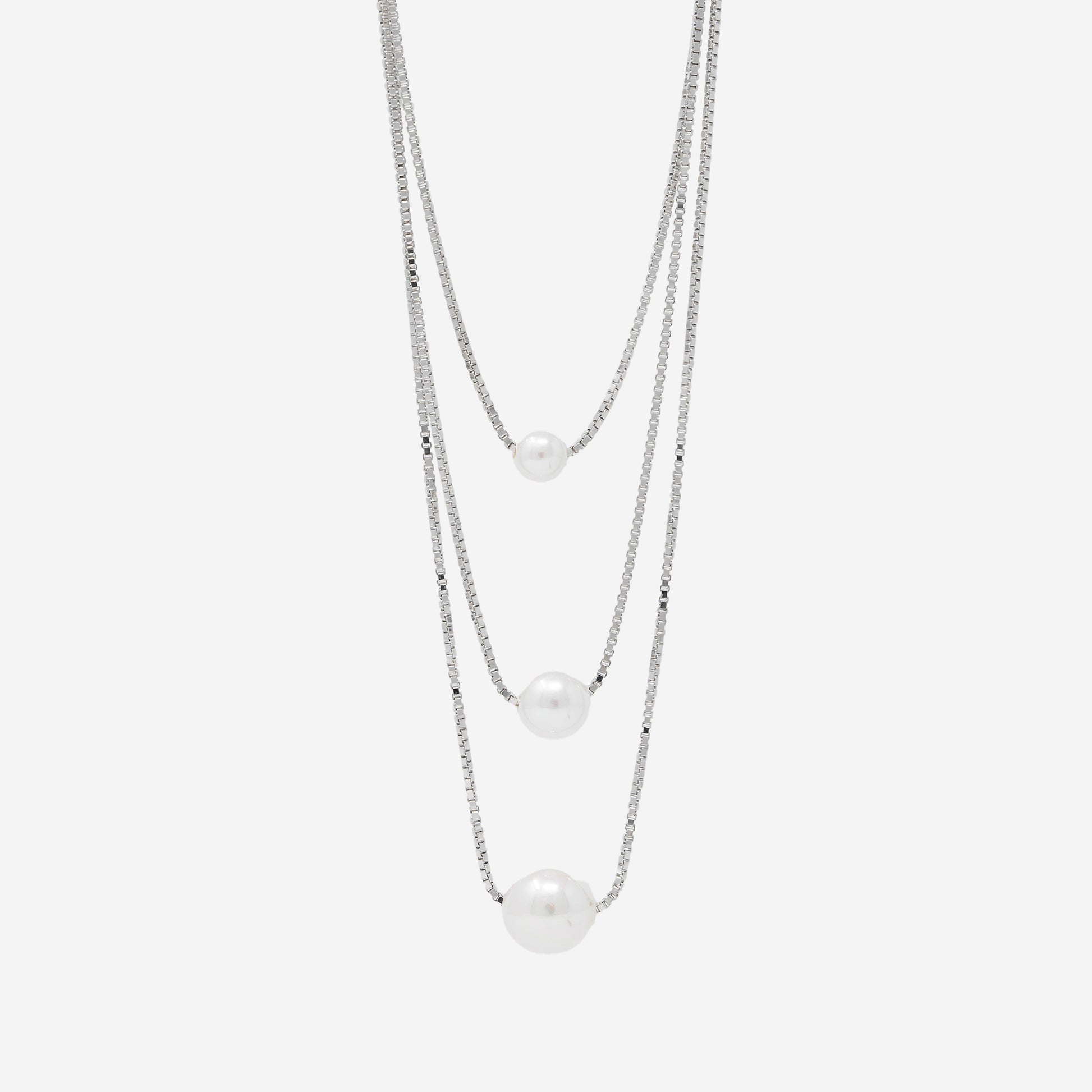 The Triple Pearl Harmony Necklace is a stunning piece that embodies elegance and sophistication. Crafted from high-quality silver, this necklace features three delicate chains, each adorned with three lustrous pearls. The harmonious arrangement of pearls symbolizes unity and balance, making this necklace a perfect accessory for any outfit or occasion.