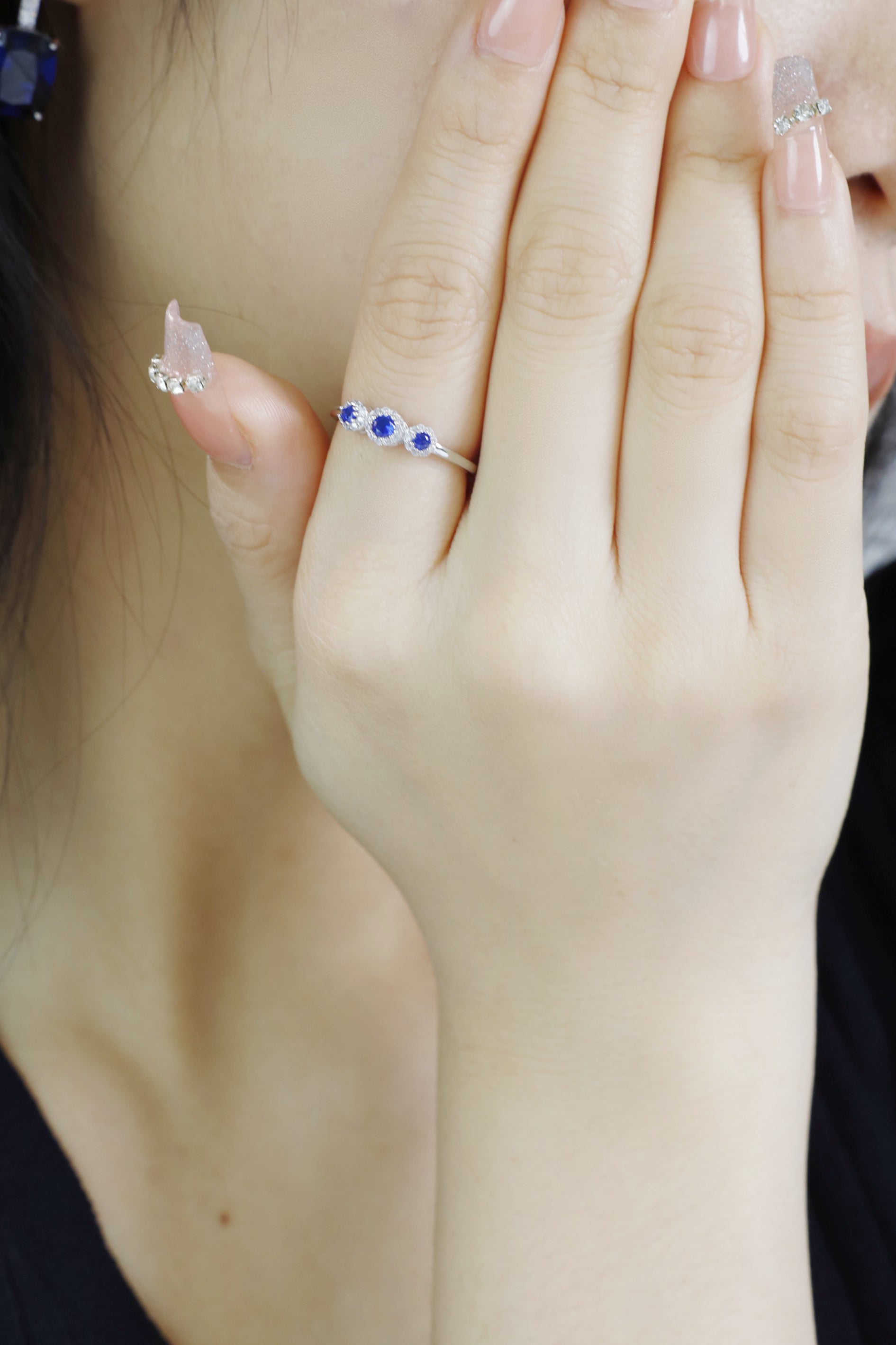 Each stone is carefully chosen to create a stunning gradient effect that is both elegant and eye-catching. This ring is perfect for adding a touch of serenity and sophistication to your look, reminding you of the calming beauty of the ocean and the vastness of the sky.