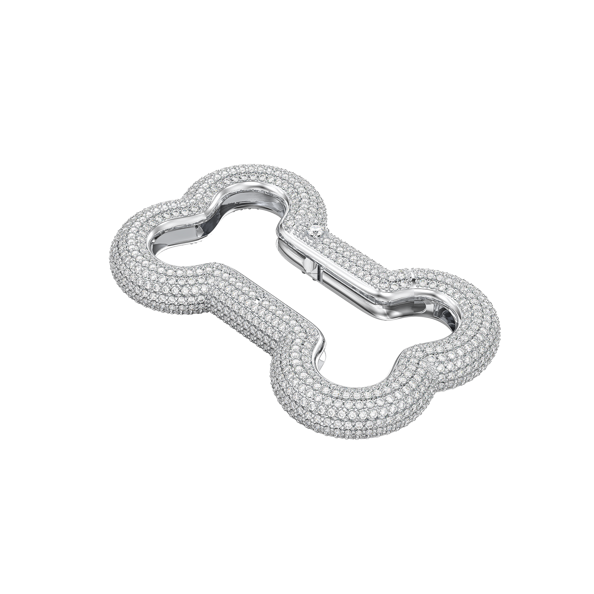 The Bone Bling Carabiner adds a playful twist to luxury. Shaped like a bone and encrusted with sparkling cubic zirconia, this unique carabiner combines fun and glamour effortlessly. Perfect for those who love bold, statement-making accessories, it brings a touch of whimsy and shine to any look.
