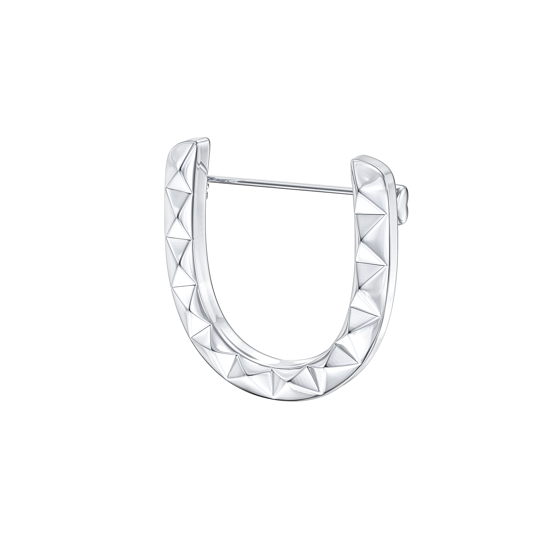The Studded Horseshoe Brooch combines classic form with a modern edge. Its horseshoe shape is adorned with sleek, geometric studs, giving this piece a bold and stylish finish. Perfect for adding a touch of sophistication and attitude to any outfit, this brooch is a versatile accessory that effortlessly blends elegance with contemporary design.